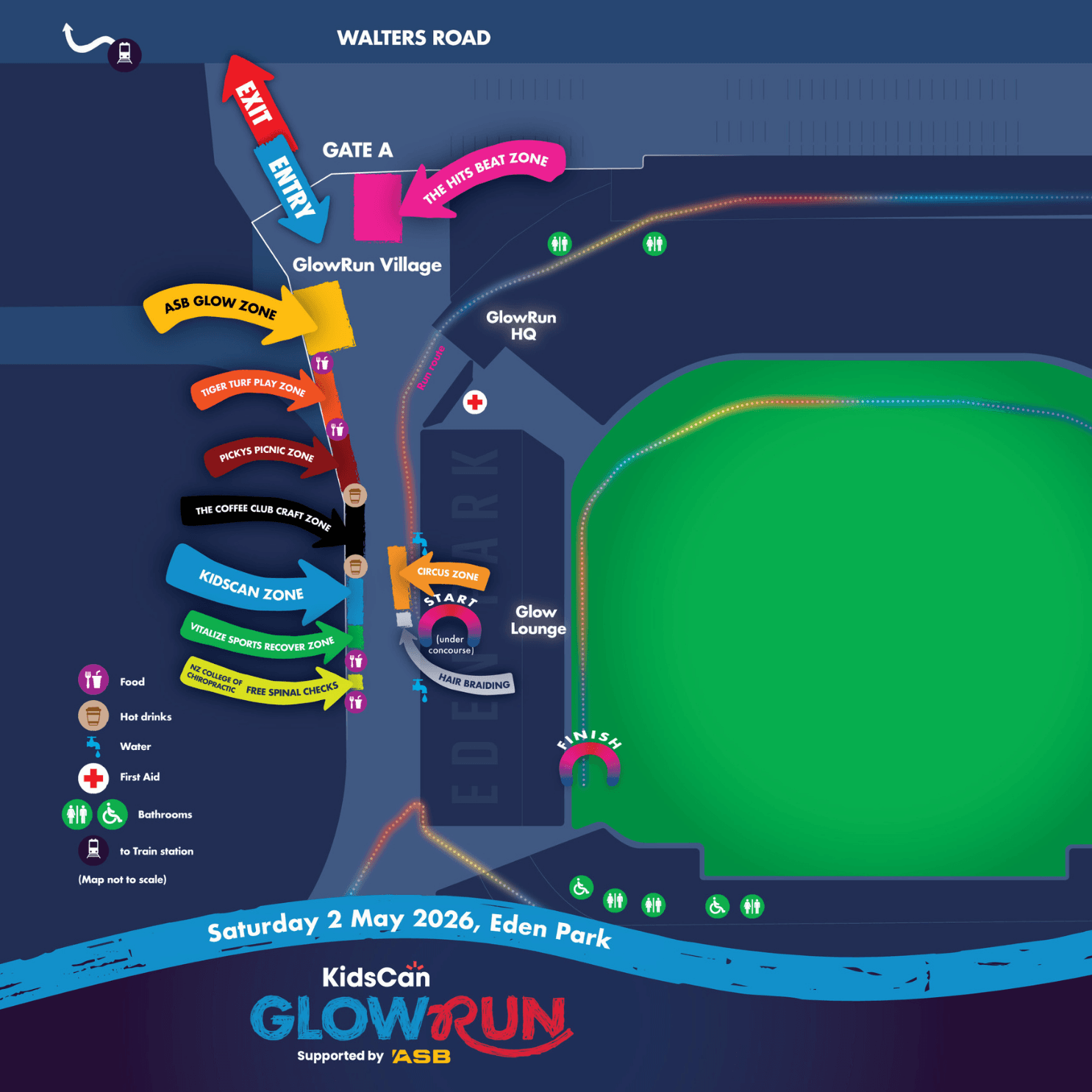 Join us on Saturday 2 May from 6pm, for a festival-style, 2.5km family-friendly glow run (or walk) through the iconic Eden Park.